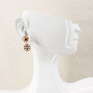 The unmistakable Tory Burch logo takes center stage. Iconic logos dangle from geometric studs, creating modern metal lightweight earrings.