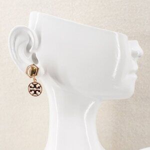 Tory Burch Hexagon Circle Logo Drop Earrings Rose Gold OS
