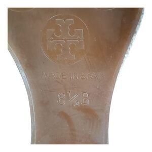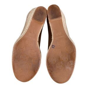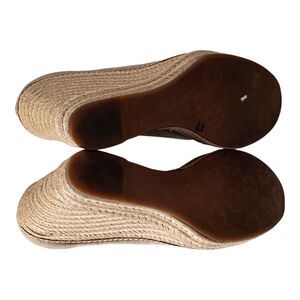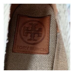 Tory Burch Jackie Espadrille Wedge Sandal Shoe Bow Peep Toe Beige Canvas 8.5 B