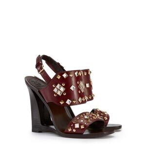 Tory Burch Kingsbridge Studded Open-Wedge Sandal Red 6.5 NIB $450