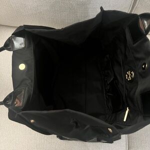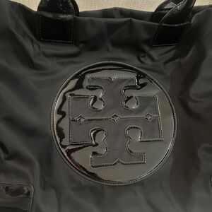 Tory Burch Large Canvas Black Tote w/Patent Leather