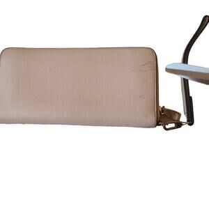 Tory Burch Leather Wristlet. Preowned. Minor wear. Pink shade of Leather. Gold Tone Hardware. Zipper Closure. Interior Card Slots. Measurements Included In Pictures. Good Condition. Smoke Free Home. Offers Welcome.