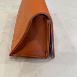Tory Burch Orange Sunglasses Case Gold Logo NWOT. Never used. Brand new. Plastic still over gold embellishment. Felt inside to protect lens. soft case.