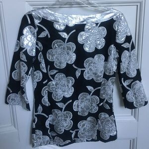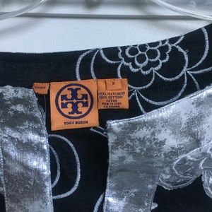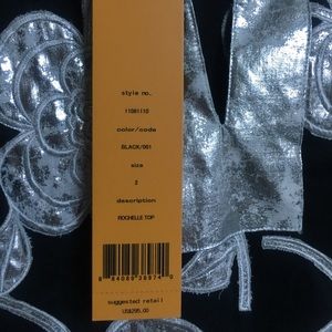 Tory Burch Rochelle Top in Black with Silver Floral Print Design. Brand new- NEVER WORN.