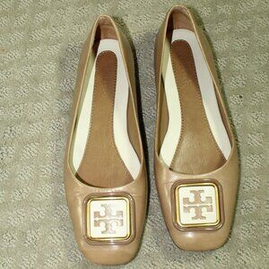 Tory Burch Women's 6M Tan Leather Logo Flats