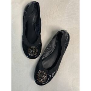 Tory Burch Womens Ballet Flats size 8 M Black Patent Leather Gold Caroline