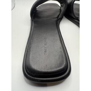 Tory Burch Women’s Size 9 Black Leather Logo Flat Slide Sandals Slip On