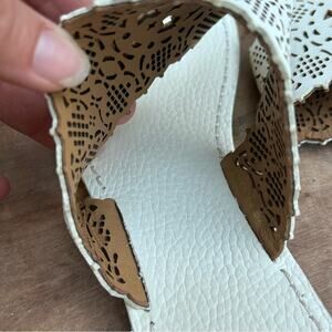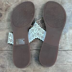Tory Burch slides sandals flats size 9.5 cutout leather off white lattice eyelet
