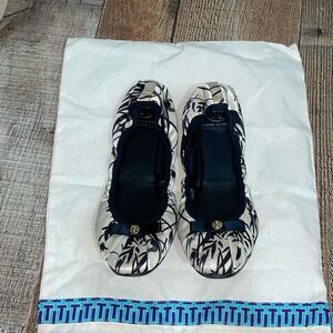 Tory Burch Womens Ivory Black Ballet Flats Comfort Slip On Round Toe Size 8.5M