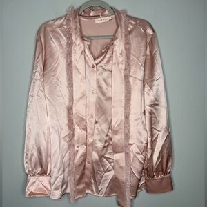 Size 14. Excellent condition. Pink. Body: 100% Silk. Trim: 100% cotton.