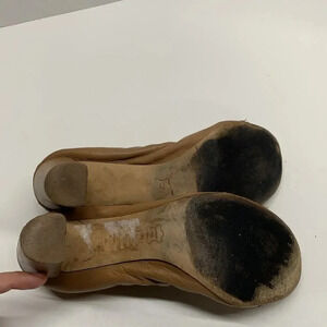 Tory Burch Romy High Heels Shoes Patent Leather Cap Toe Scrunched Brown Tan 7.5