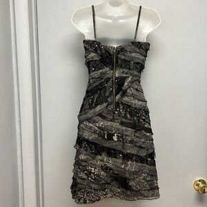 Tracy Reese Convertible Spaghetti Strap/Strapless Silk/Lace/Sequin Tiered Dress