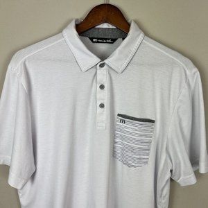 Travis Mathew Polo Shirt Mens Large White Short Sleeve Golf Logo Solid Pocket