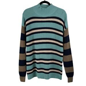 Treasure & Bond Multi Stripe Mock Neck Knit Pullover Sweater Oversize Medium NWT