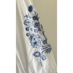 Treasure & Bond White Blue Floral Embroidered Bohemian Peasant Top Size 2X