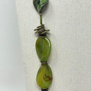 Treska Beaded Long Necklace Green Stone Porcelain Glass Boho Chunky Signed