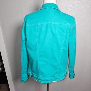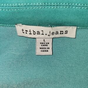 Tribal Jeans Teal Stretchy Jean Jacket Brushed Silver Buttons