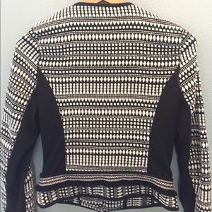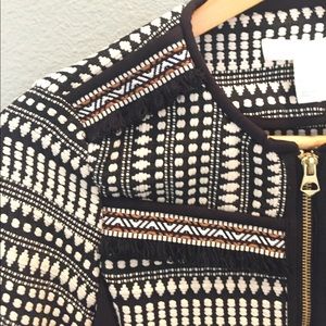 This tribal inspired Jacket is so cool. The stitching and embroidery make it look expensive and it fits a small beautifully. 76% cotton, 24% polyester