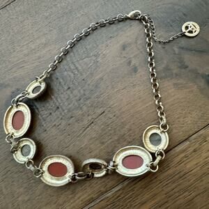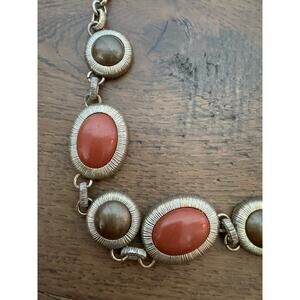 Trifari Rolo Chain Cabochon Necklace Gold Tone Neutral Green Orange
