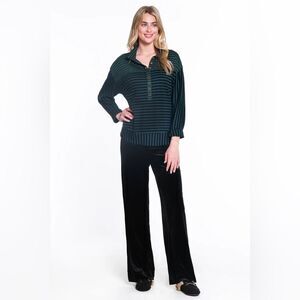 Step into luxurious comfort with our Wide Leg Velvet 5 Pocket Pant in classic black. Crafted from a soft polyester and spandex blend, these pants offer an indulgent feel while ensuring a flattering fit. The wide leg design provides a breezy silhouette that pairs beautifully with both casual and dressy tops. With five functional pockets, these pants combine practicality with style, making them an essential addition to your wardrobe for any occasion, from brunch to evening events.