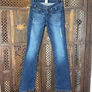 This signature style features our traditional single needle stitching, horseshoe pockets, and premium denim in a rich wash. The roomy leg opening lends itself to a leg lengthening effect.