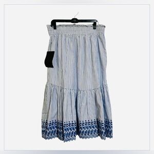 Tuckernuck Cinzia Blue Stripe Eyelet Skirt Size M NWT Cotton Blend Midi Boho