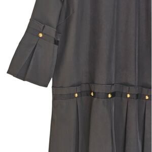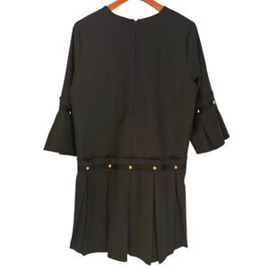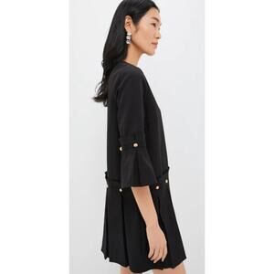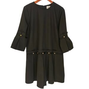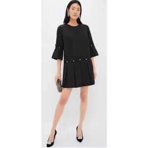 EUC - Elegant black mini dress. Features pleated, bell sleeves and skirt. Perfect for any occasion.