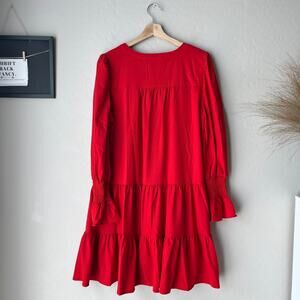 This vibrant red  Kenzo sundress byTuckernuck's Pomander Place features a flattering V-neckline and elegant bishop sleeves. The ruffled, tiered design adds a playful touch, making it perfect for both casual outings and cocktail events. Size: XL.