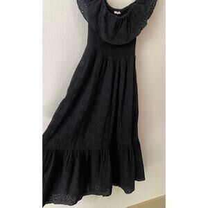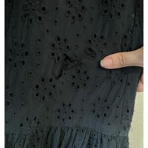 Tularosa Carlotta Eyelet Floral Midi Dress XS Black Smocked Ruffle Cottage FLAWS