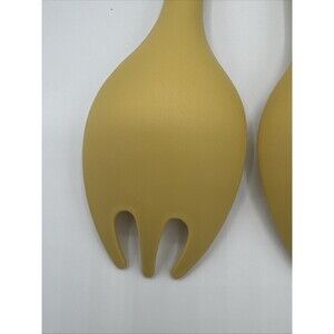 Vintage salad or pasta serving forks, could also use as a spoon to serve dessert. These nest together and appear unused. There are no scratches or melt marks. Great vintage yellow/gold color.