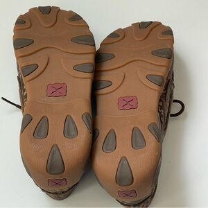 Twisted X Leather Boat Mocasines Brown Lace Up Size 5 Youth Fit Like Adult 8.5