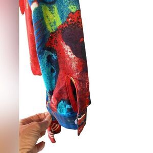 Two-Sided Red Cotton Bohemian Bali Mandarin Collar 3/4 Button Sleeve Tunic