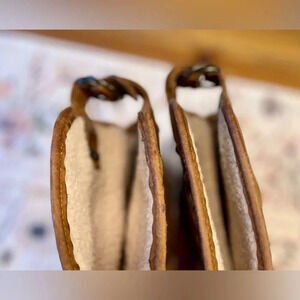 UGG Aldon winter boots, genuine sheep leather and shearling interior, buckle back. Women’s size 7. Tops can be cuffed or worn up, 1” heel, non-slip.