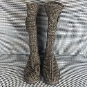 UGG Classic Cardy II Knit Sweater Boot Womens Size 8 Brown Sheepskin Lining