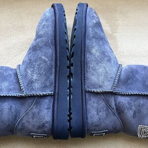 UGG Classic Short Swarovski Crystal Bow Boot Blue Suede Women 6 Sheepskin Cozy