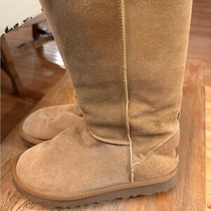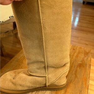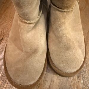 Cozy UGG boots in beige suede. Ideal for casual wear.