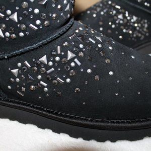 UGG MINI GALAXY BLING CRYSTAL SUEDE BOOTS BLACK