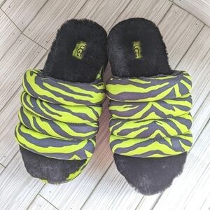 UGG Maxi Slides in Tiger Print in Key Lime and Black Women's Size 5 NWOT