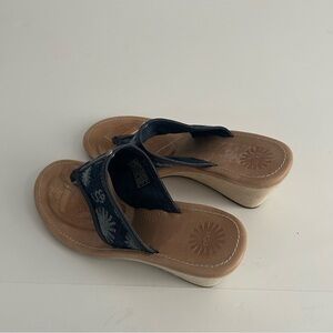 UGG Solera Denim Logo Wedge Sandals Size 8