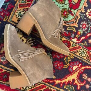 Stylish UGG ankle boots with a suede finish. Features a chic tassel detail. Perfect for versatile wear.