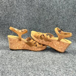 UGG Uma Wedge Sandals Women's Size 8.5 Chestnut Suede Cork Strap Buckle Platform