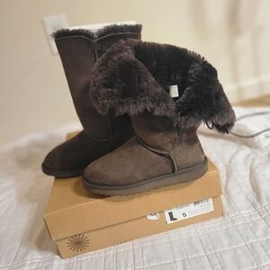 UGG womens Bailey Button Triplet Winter boots in Chocolate size 5. in excellent used condition