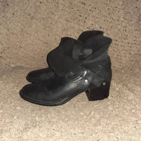 UGG-Elysian 1095792-Black Leather Ankle Boots-Side Zip-SZ 6.5-Excellent