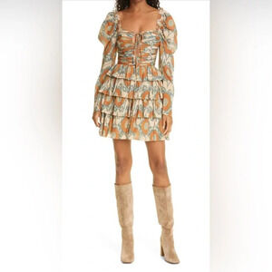 ULLA JOHNSON Naiya Dress Metallic Ruffle Mini Size 6