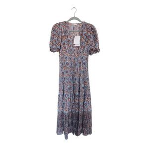 Feminine and elegant, the Caspia Ilana Dress is the perfect day-to-night style. Crafted from a lightweight shadow stripe with intricate, yet delicately hued florals that reflect the natural dyes from a vintage Persian botanical print, this midi features v-neck, puff sleeves, double drawstring ties at the waist, and has convenient side pockets. Finished with a tiered skirt, pair with ballet flats, espadrilles, or heels- this versatile beauty can go with anything and everything.