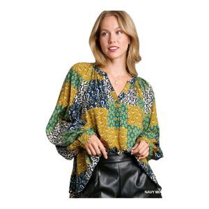 UMGEE Blouse Bohemian Flowy Shirt Top LARGE