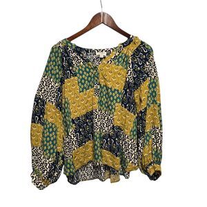 UMGEE Blouse Bohemian Patchwork Flowy Shirt Top LARGE