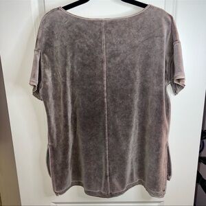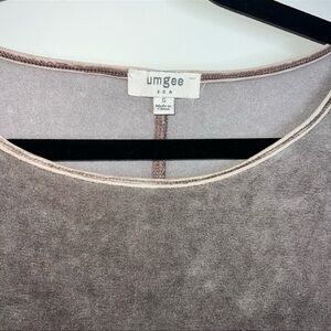 UMGEE Top Crushed Velvet Pullover Round Neck Soft Brown Gray Boho Shirt