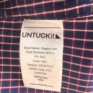 UNTUCKit Graach Slim Fit Blue Red Plaid Long Sleeve Men's Button Shirt Style 40322 100% Cotton Wrinkle Free  MSRP: $105