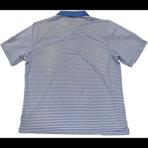UNTUCKit Polo Preppy Designer Breathable Athletic Gym Golf Comfort Striped Short Sleeve Shirt size XL in good pre owned condition overall. There are a couple of what appears to be pen marks on the shirt, but they've not been treated. They are very hard to notice or spot due to the stripes, but they're shown in the photos. There's a tiny pin hole on the back which is also shown in the pictures. Otherwise, the shirt is in great condition. The flaws are very hard to spot due to the striping pattern on the shirt. This Polo shirt is the active, moisture-wicking material that is very stretchy and breathable. Super comfy and great for most all activities.